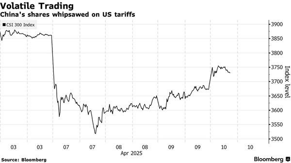特朗普席卷全球的关税以及突然的逆转令投资者感到震惊,全球市场剧烈波动。周四,随着刺激措施的押注升温,中国内地和香港的股市基准指数加入全球股市的反弹行列,尽管在岸人民币汇率跌至2007年以来的最低水平。
