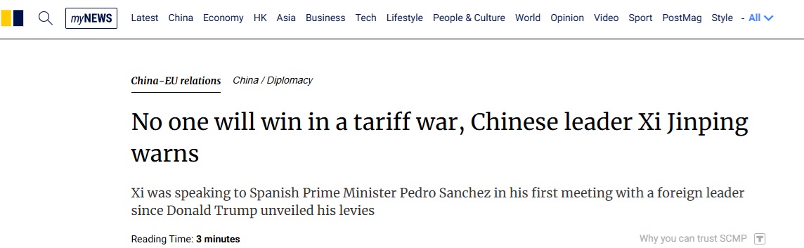 习近平周五对到访的西班牙首相桑切斯表示,关税战没有赢家,中国不怕压迫。