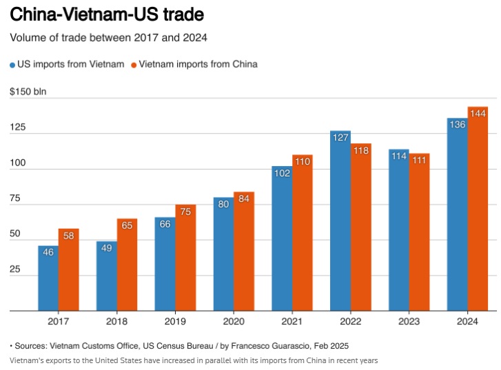 数周以来,越南一直在提供各种优惠条件,希望以此说服美国总统特朗普(Donald Trump)政府对其对美巨额贸易顺差持乐观态度。然而,作为特朗普“解放日”攻势的一部分,越南却被征收46%的关税。
