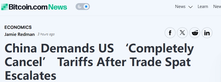 此言论正值中国外交部发言人毛宁在X上的评论之后,她警告说普通消费者最终将为这些强硬贸易措施买单。