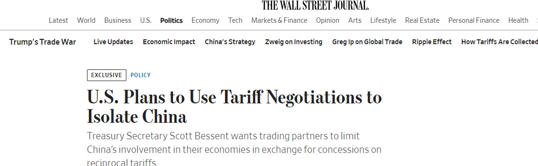 特朗普打击中国酝酿“狠招”!华尔街日报独家:美国计划用关税谈判孤立中国