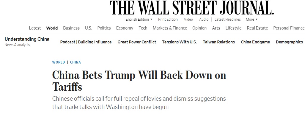 华尔街日报:中国押注特朗普将在关税问题上让步 习近平向中国人民发出强烈信号