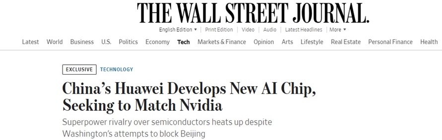 《华尔街日报》称,这家中国旗舰科技公司的稳步进展表明,尽管华盛顿方面为了遏制中国半导体行业的发展已采取措施,比如切断中国获得部分西方芯片制造设备的途径,但中国半导体行业仍具有韧性。