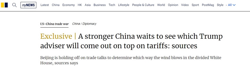 FX168财经报社(亚太)讯 香港《南华早报》周四(5月1日)发布独家报道称,消息人士称,北京方面暂缓与美国进行贸易谈判,以确定“分裂的”白宫的风向。中国在等待特朗普哪位顾问将在关税问题上占上风。