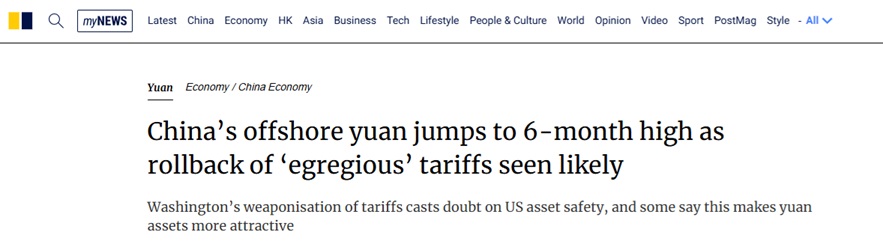 分析人士表示,随着美国将关税武器化并攻击其贸易伙伴,在全球情绪发生更广泛转变的情况下,人们对美国资产安全也产生怀疑,促使一些投资者从美元和国债中分散投资,使人民币资产更具吸引力。