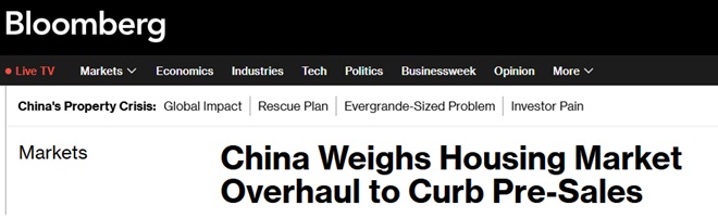 彭博社指出,现行的预售制度允许开发商在房屋竣工前出售,该制度被广泛指责加剧房地产供应过剩,并导致开发商债务累积。几年前,未完工的房屋建设项目在国内引发广泛的抵押贷款抵制和抗议活动。