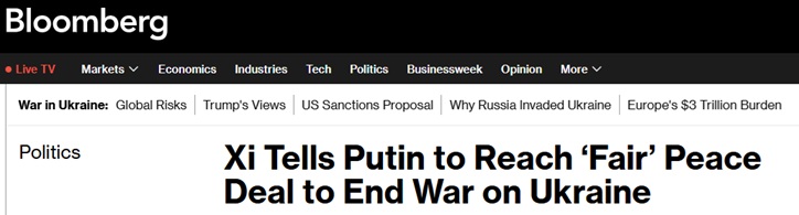 彭博社指出,虽然习近平没有详细说明可能达成的协议是什么样的,但这似乎是中国领导人首次亲自阐述结束俄乌战争的协议原则。