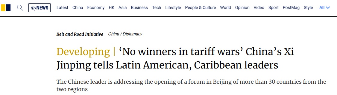 习近平表示:“中国和拉美和加勒比国家共同倡导真正的多边主义,维护国际公平正义。” 他没有点名任何国家,但表示贸易战没有赢家,“霸凌和霸权主义只能导致自我孤立”。