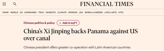FX168财经报社(亚太)讯 英国《金融时报》周二(5月13日)报道称,中国国家主席习近平承诺支持巴拿马应对美国在巴拿马运河港口所有权问题上的施压,并承诺加强与拉丁美洲各国的合作。北京方面正在积极争取这一长期被美国视为自家“后院”的地区。