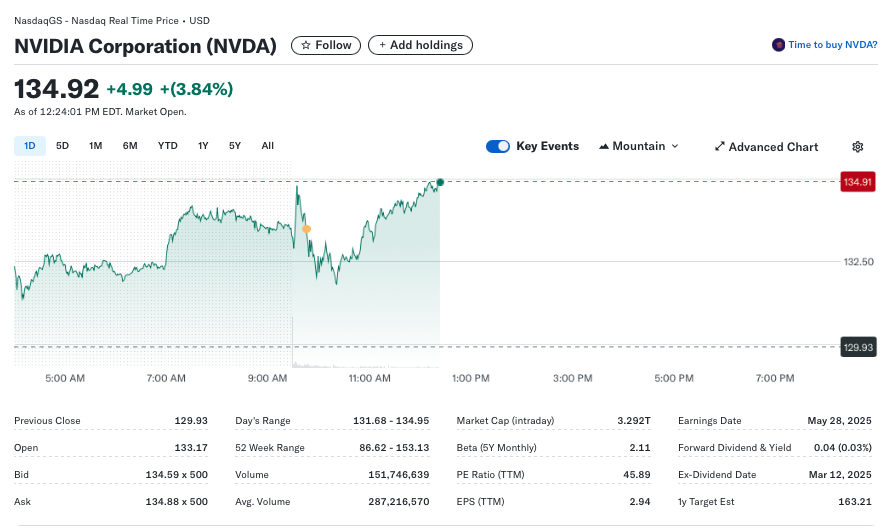 FX168财经报社(北美)讯 周三(5月14日),截至目前英伟达(NVDA)股价上涨逾3.84%,延续前一交易日近6%的涨幅。周二,该股上涨使其市值自2月以来首次突破3万亿美元关卡。