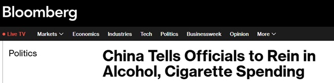 官方的新华社周日表示,政府和执政的共产党发布的通知还包括招待和烟酒的支出。