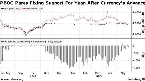 中美达成的关税休战协议提振了人民币汇率,使其兑美元汇率从4月份创下的18年低点上涨逾2%。人民币的上涨为中国人民银行提供了放松人民币汇率保护的空间。