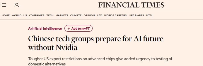 FX168财经报社(亚太)讯 英国《金融时报》周五(5月30日)报道称,由于英伟达(Nvidia)处理器库存不断减少以及美国出口管制日益收紧,中国大型科技企业已开始为没有美国芯片制造商英伟达芯片的未来做准备,积极转向采用国产芯片以发展人工智能(AI)。