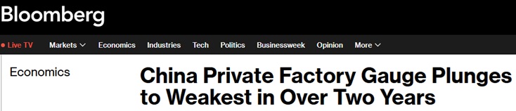 中国经济突传坏消息!关键民间调查:中国制造业活动创两年多来最糟糕表现