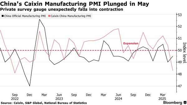 该调查基于5月12日至21日进行的一项民意调查,结果远弱于上周六发布的官方PMI数据。官方数据显示,由于关税暂缓,制造业萎缩幅度有所收窄。