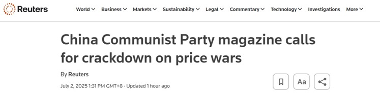 中国重大突发!执政党顶级刊物罕见批评地方官员 呼吁严厉打击价格战