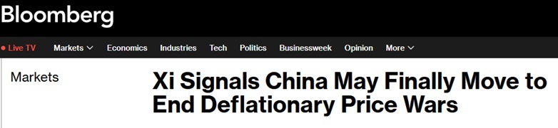 FX168财经报社(亚太)讯 美国彭博社周五(7月11日)报道称,多年来,人们对通货紧缩和困扰中国经济大部分领域的惨烈价格战的担忧不断加剧,国家主席习近平领导的政府终于显露出采取行动的迹象。