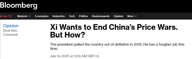 中国重磅信号!彭博专栏:习近平希望终结中国的价格战 但该如何做?