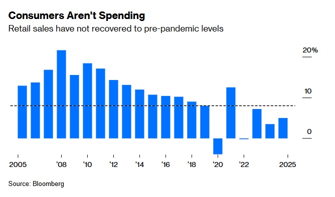 第三,如何解决需求侧问题?电商巨头之间的地盘之争显然源于消费支出疲软。今年零售额增速徘徊在5%左右,远低于疫情前的8%。