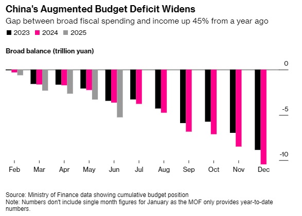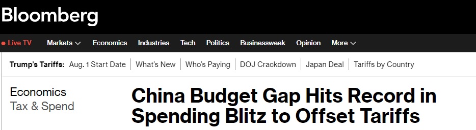 FX168财经报社(亚太)讯 美国彭博社周六(7月26日)报道称,中国上半年预算赤字创下新高,凸显出由于美国总统特朗普(Donald Trump)的关税导致对美出口减少,中国政府加大了刺激国内需求的力度。