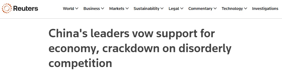 英国路透社周三报道称,中国高层领导已承诺,将通过管控所谓的无序竞争和加大下半年重点行业产能削减力度,来支持面临各种风险的经济。