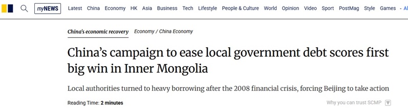 FX168财经报社(亚太)讯 香港《南华早报》周三(8月6日)最新报道称,中国去年启动的地方政府债务减免工作,在内蒙古自治区退出中央政府高风险债务名单后,取得了首个重大成功。