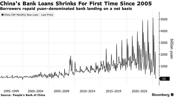 FX168财经报社(亚太)讯 美国彭博社周三(8月13日)报道称,7月份,衡量中国银行贷款的一项关键指标出现20年来首次萎缩,而广义信贷增长则出现放缓,因为在经济陷入通货紧缩的情况下,借贷需求低迷。