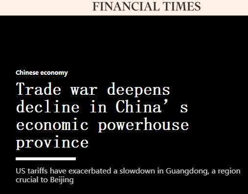 FX168财经报社(亚太)讯 英国《金融时报》周二(8月26日)报道称,美国关税加剧了广东的经济放缓,而广东是对于中国经济而言至关重要的地区。