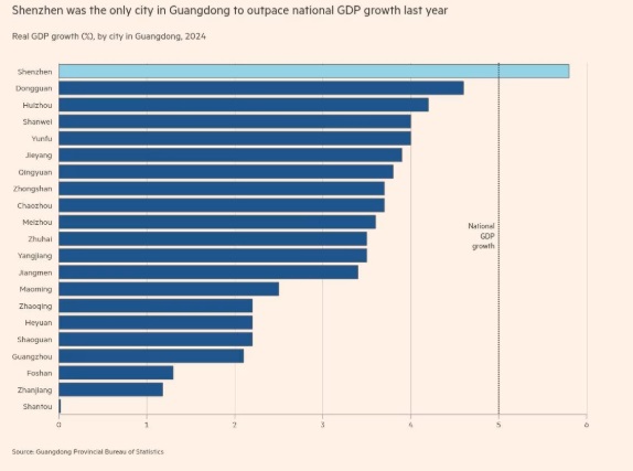 深圳是中国高科技中心和最富裕的城市之一,也是广东省唯一一个在2024年实现增速高于全国平均水平的城市。