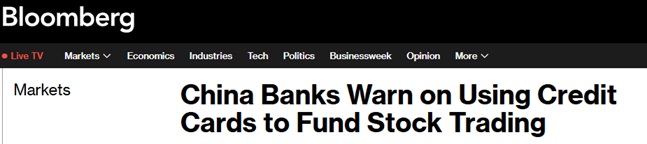 中国官方支持的《证券日报》周四在社论中表示,信用卡资金属于高成本、短期债务,如果用于股票投资,可能会显着放大债务风险。