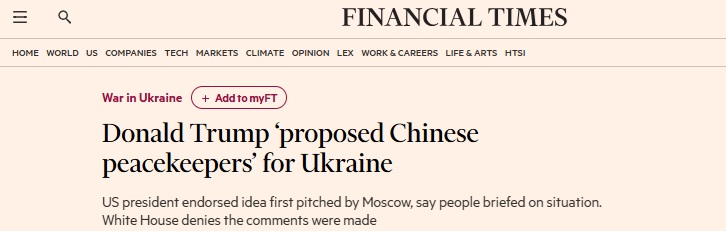 中美突传大消息!英国金融时报:特朗普提议向乌克兰派遣中国维和部队
