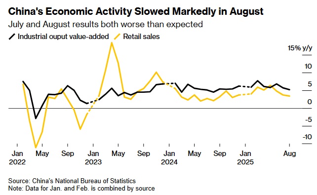 FX168财经报社(亚太)讯 美国彭博社周一(9月15日)最新报道称,中国经济活动连续第二个月放缓幅度超过预期,投资增速急剧下滑,这增加了政策制定者推出更多刺激措施以确保经济增长保持在官方目标水平的可能性。