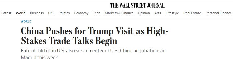 《华尔街日报》称,对特朗普政府来说,TikTok现在是试金石。知情人士表示,北京方面在出售问题上的任何灵活性都将表明其准备做出必要让步,以确保特朗普访问。