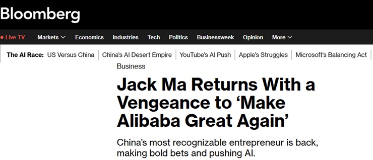 彭博社指出,长期以来,人们一直期待着这位中国最富有、最杰出的科技领袖的回归,因为这预示着中国此前自由放任的科技行业正在重新获得北京的青睐。虽然目前尚不清楚北京方面是否明确批准了他的回归,但今年2月与国家主席习近平的握手被视为他在中国寻求人工智能促进经济增长之际回归的标志。