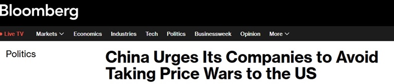 FX168财经报社(亚太)讯 美国彭博社周四(9月25日)报道称,中国呼吁在美国开展业务的中国企业避免在美国扩大价格战——这表明北京方面渴望维持与华盛顿达成的脆弱的贸易休战。