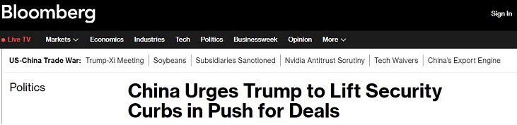 彭博社称,特朗普是否会接受中国的提议尚不清楚——不过其中一位知情人士表示,美国尚未排除任何可能性。
