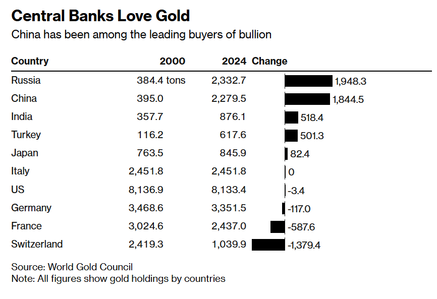 近年来,黄金价格上涨约四倍,从疫情期间的2000美元突破到今年3月的3000美元,这一过程中特朗普政府的关税政策起到了推波助澜的作用。另外,史诗般的涨势的动力部分来自ETF的出现,后来又来自央行的热情。去年,各国央行的需求占全球需求的五分之一以上,而2010年代的平均水平接近十分之一。