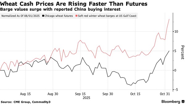 此外,美国政府停摆导致农产品出口销售数据无法发布,追踪货物运输情况变得困难。不过,美国农业部已开始恢复发布一些关键报告。上个月的报告被取消后,该部门计划于11月14日发布全球供需展望报告(WASDE)。
