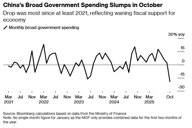 FX168财经报社(亚太)讯 美国彭博社周二(11月18日)报道称,中国的广义财政支出在10月出现自至少2021年以来最大幅度的下滑,削弱了这一关键投资与经济增长驱动力。