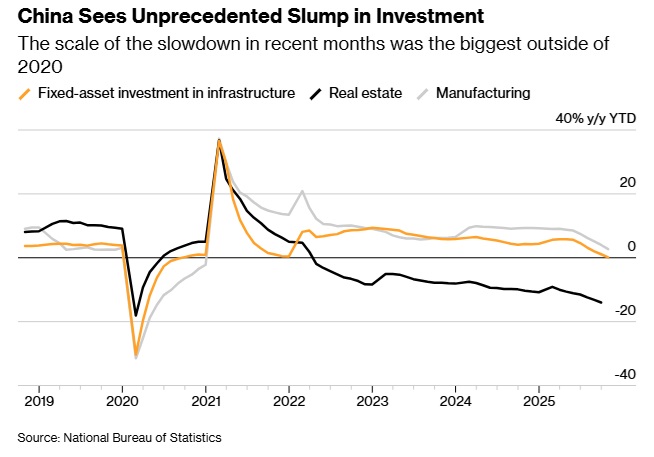 投资(其中很大一部分由预算支出驱动)在10月出现前所未有的下降,叠加疲弱的消费与减弱的外需,进一步拖累经济表现。