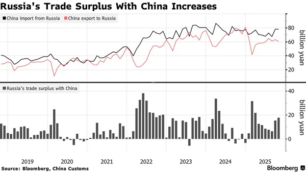 在财政赤字压力下、又被拒绝获得美元和欧元融资渠道的情况下,莫斯科有动力通过发行人民币债来筹资。与此同时,中俄贸易顺差的激增也让俄罗斯本土出口商手中积累了大量人民币,形成“人民币过剩”。这次债券发行同样标志着北京方面在推动人民币走向全球、打造与其经济与政治影响力更匹配的国际货币方面迈出了新一步。