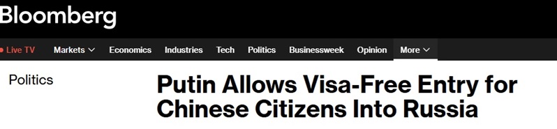 FX168财经报社(亚太)讯 美国彭博社周一(12月1日)报道称,俄罗斯总统普京(Vladimir Putin)签署了一项命令,允许中国公民免签入境俄罗斯,显示两国关系持续深化。