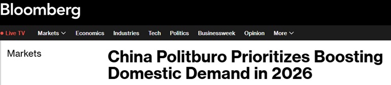 FX168财经报社(亚太)讯 美国彭博社周一(12月8日)最新报道称,中国高层领导人将加强国内需求作为2026年经济工作的首要任务,因为北京希望为应对全球贸易风险提供缓冲。