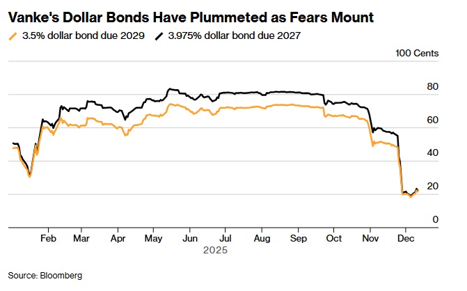 这一举动释放出信号:国家层面的官员终于对万科失去耐心,并引发连锁反应,最终迫使公司请求延长偿还部分债务的时间。其美元债价格已较此前下跌逾三分之二,一度跌至面值的20美分低位。国有银行纷纷紧急行动以限制自身风险敞口。