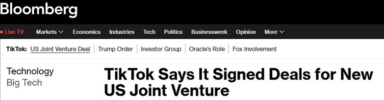 中美突发重磅!彭博独家:TikTok称已签协议 将成立美国股东占多数合资企业