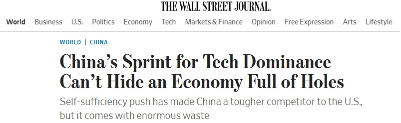 中国经济重磅!华尔街日报深度:科技冲刺加速 仍遮不住经济的千疮百孔