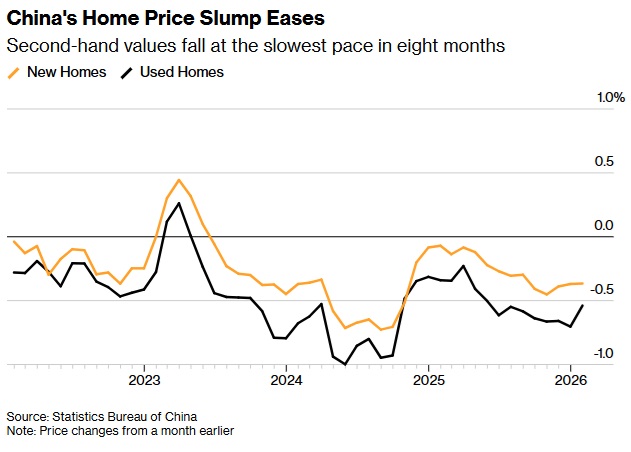 FX168财经报社(亚太)讯 美国彭博社周五(2月13日)报道称,中国二手房价格在1月以更慢的速度下跌,这让人看到了持续已久的房地产危机有所缓解的希望。