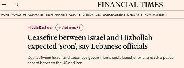 FX168财经报社(亚太)讯 英国《金融时报》周四(4月16日)报道称,据黎巴嫩官员称,在美国施压以缓解中东紧张局势的背景下,以色列与黎巴嫩之间为停止以色列对真主党的战争而达成的停火协议预计将“很快”宣布。