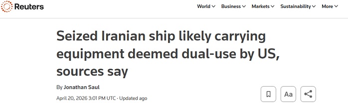 FX168财经报社(亚太)讯 一艘悬挂伊朗国旗的集装箱船“图斯卡”号于周日(4月19日)被美军登船并扣押,英国路透社报道称,据海事安全消息人士周一表示,这艘船上可能载有华盛顿认定为“军民两用”的物资,这些物资可能被军方使用。