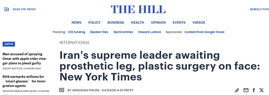 FX168财经报社(亚太)讯 美国《国会山报》(The Hill)当地时间周四(4月23日)援引《纽约时报》报道称,伊朗最高领导人莫杰塔巴·哈梅内伊(Mojtaba Khamenei)在一次炸弹袭击中幸存后,正面临严重的健康状况,目前等待安装假肢腿并接受面部整形手术。